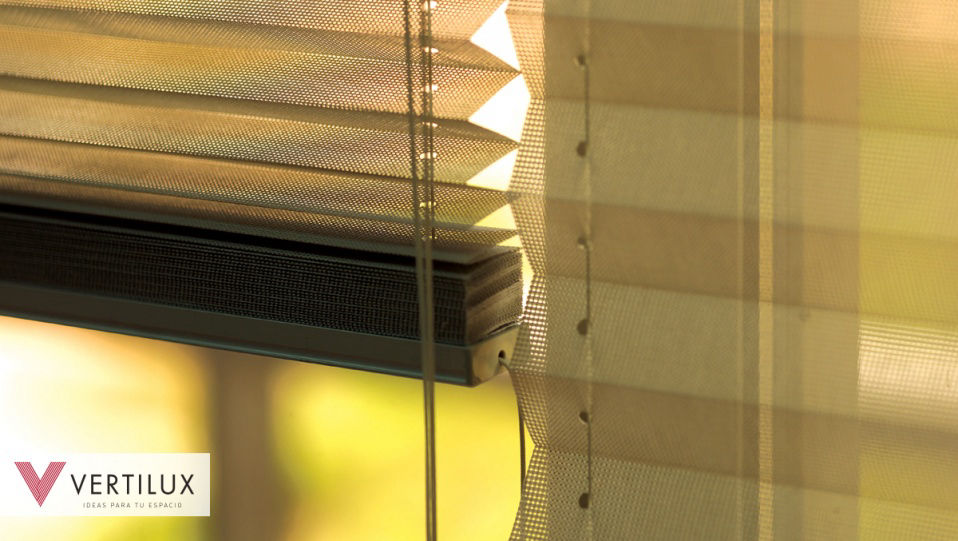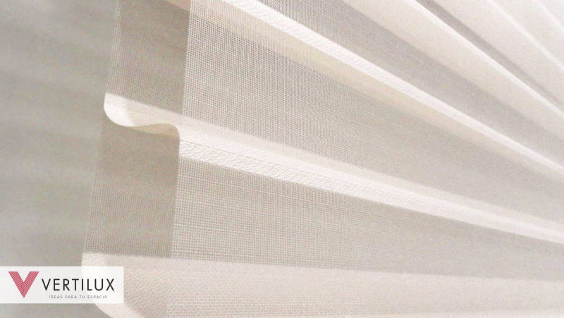 Tejido de pliegues con memoria, que ofrecen un confort e iluminación inigualable, ideal para áreas donde se requiere una gran cantidad de luz y visita al exterior, también se ofrece en un material opaco si se requiere más privacidad, existente en colores cálidos.