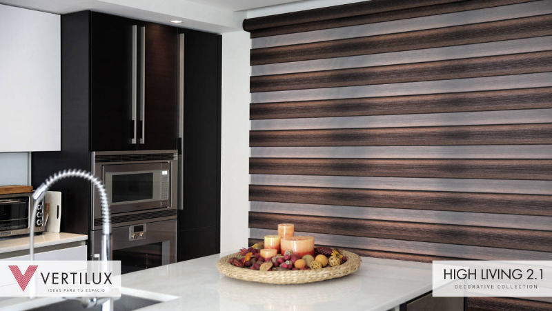 Con una diversidad de modelos y anchos de franjas, es la opción ideal para grandes ventanales. Cuenta con la característica de tener una franja de malla delgada y otra de tejido grueso, lo que permite controlar la luz natural de una manera más óptima y beneficia en todos los espacios en la zona donde está instalada.